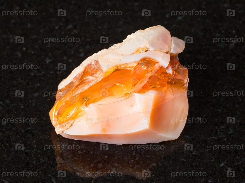 Сырой драгоценный опал и огневой опал - драгоценный камень на черном