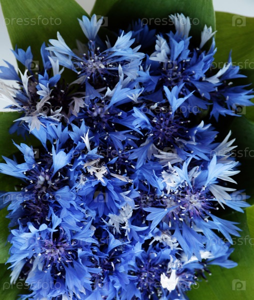 Букет из синих васильков на зеленом фоне