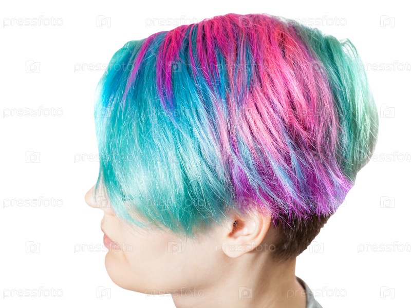 Вид сверху женской головы с многоцветными волосами