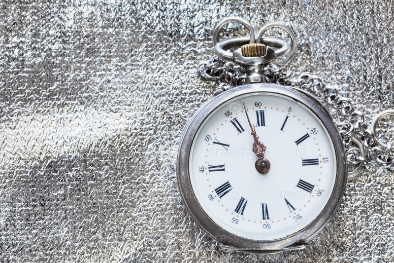 Старые карманные часы на серебряном текстильном фоне