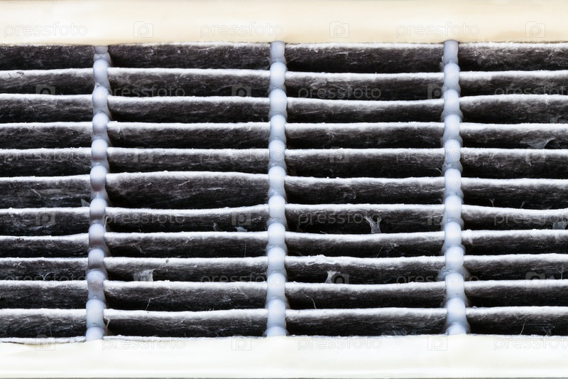Грязные лемельки использованного фильтра HEPA вблизи