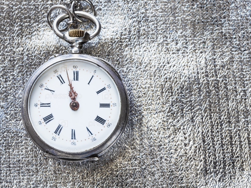 Ретро карманные часы на серебряном текстильном фоне