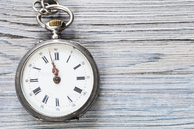 Две минуты до двенадцати на винтажных часах на дереве