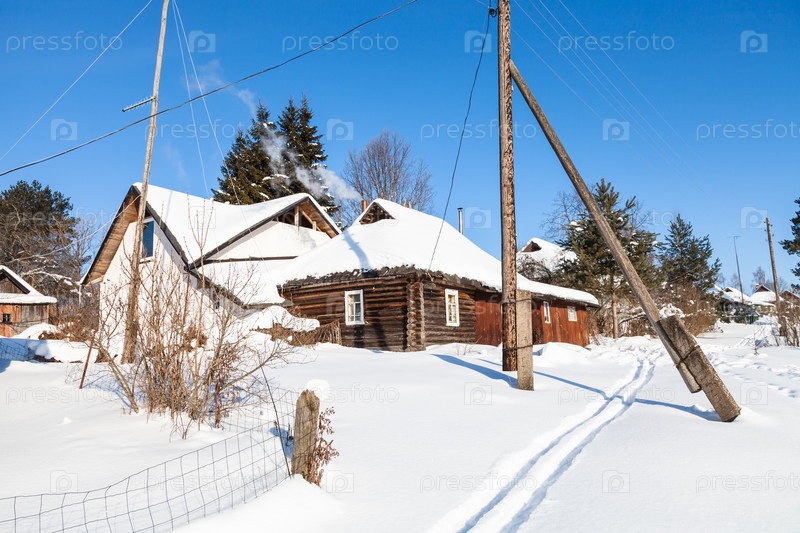 Маленькая русская деревня в солнечный зимний день