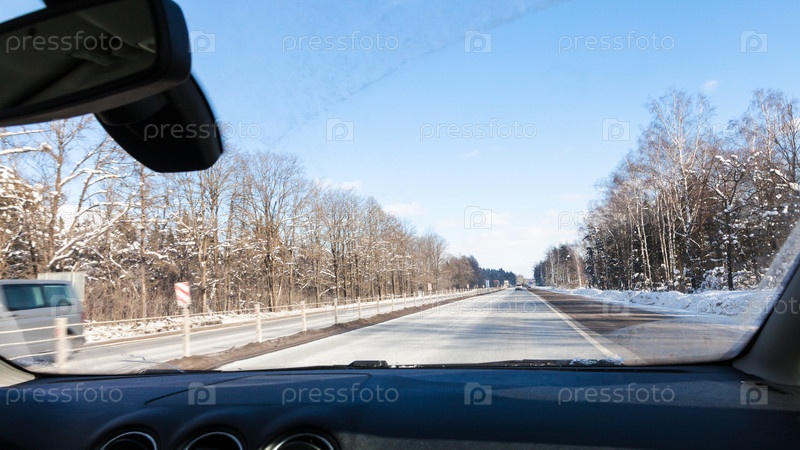 Вид на шоссе М1 в России через лобовое стекло