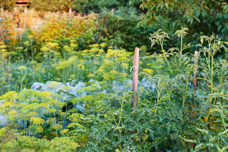 Небольшой овощный сад летом вечером