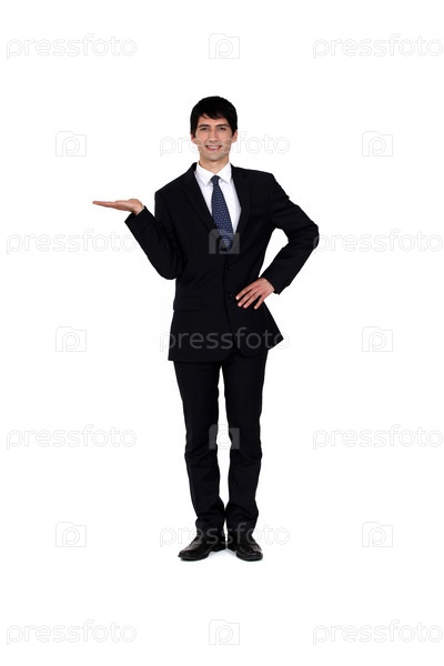 Молодой мужчина в костюме на белом фоне
