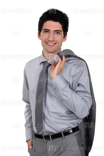 Мужчина, держащий пиджак через плечо