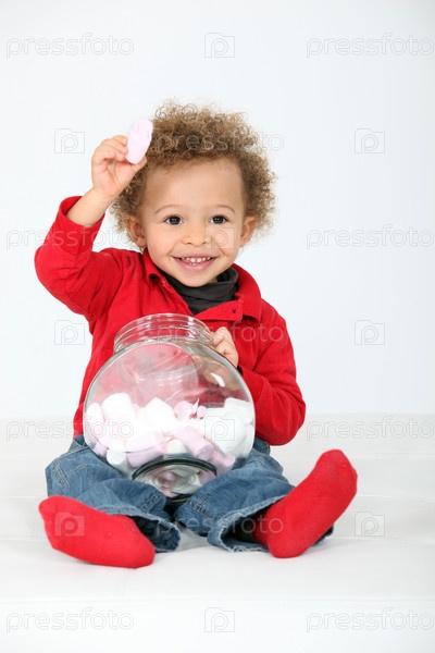 Мальчик ест сладости