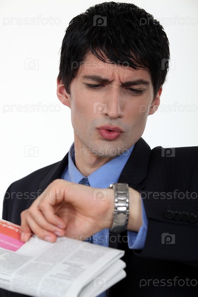 Бизнесмен смотрит на часы