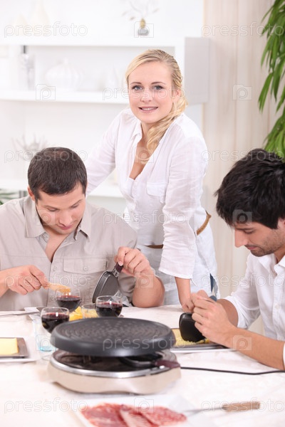 Трое друзей едят раклетт