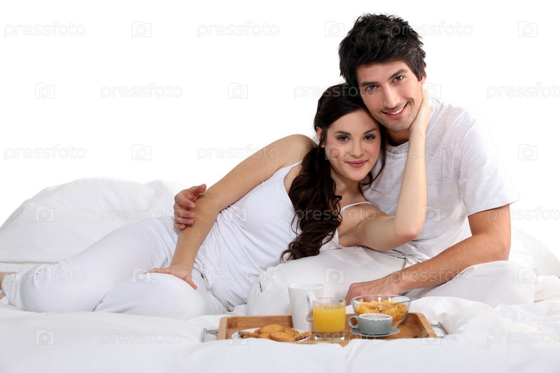 Пара завтракает на кровати