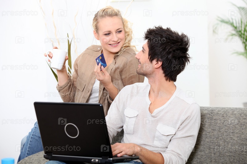 Пара делает покупки онлайн