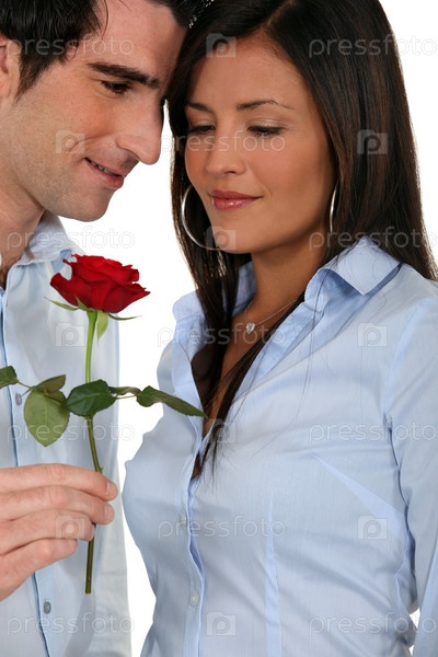 Мужчина дарит розу подруге