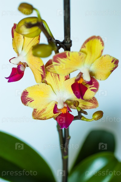 Желтая орхидея на белом фоне