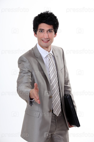 Мужчина с папкой подает руку