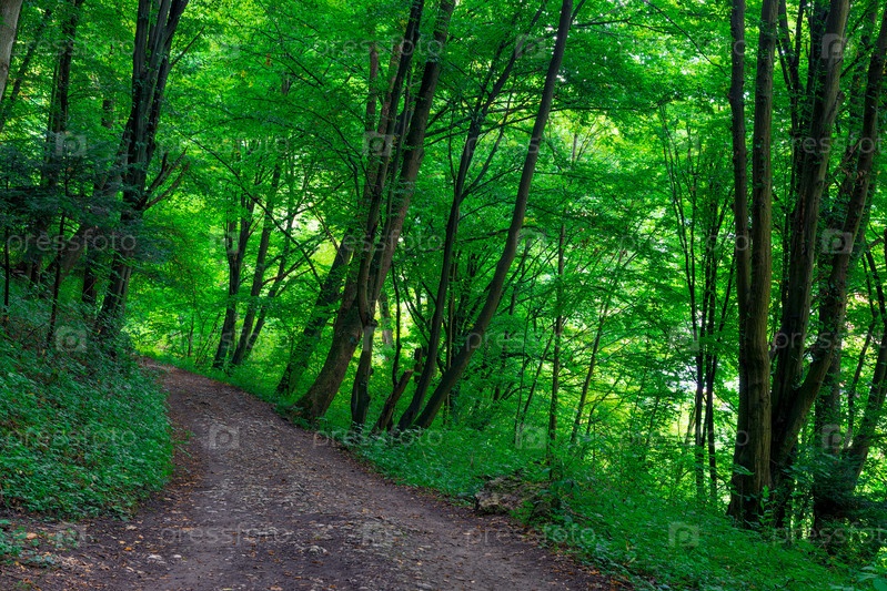 Дорога в парке, зеленые деревья летом