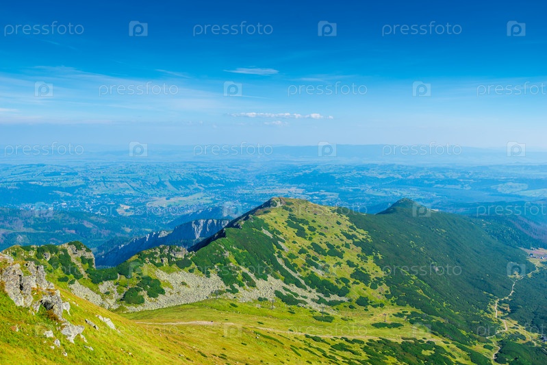 Вид с горы Kasprowy Wierch на горизонт и долину Закопане, Польша