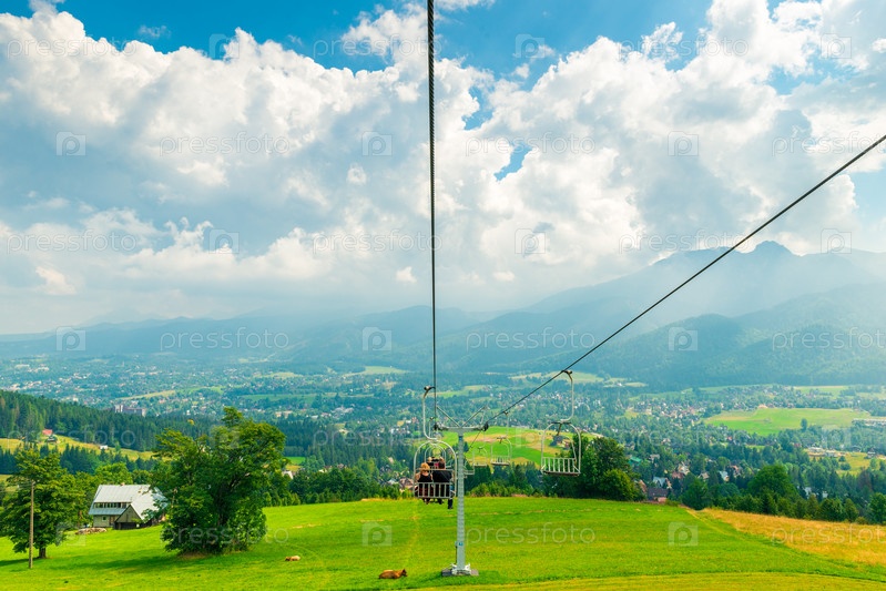 Кабельная дорога со лыжными подъемниками, красивыми пейзажами и видом на Татры, Польша
