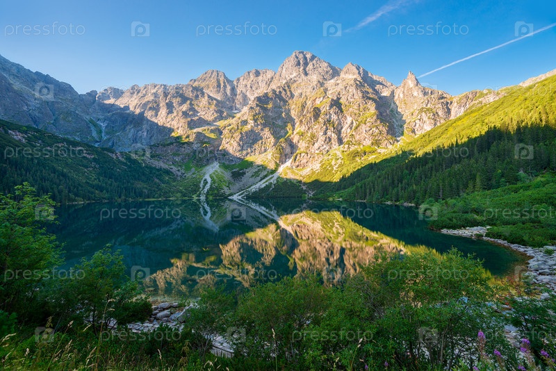 Туристическая достопримечательность Польши озеро Морские Око в Татрах на рассвете