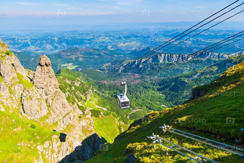 Кабельная дорога на веревках, ведущая к горе Каспровый Вер, Польша.Прекрасный вид на долину