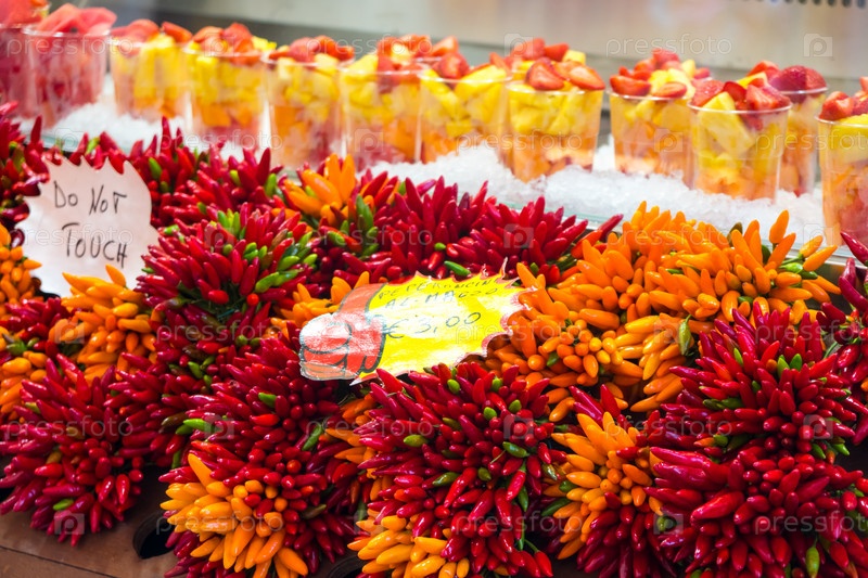 Абстрактный вид чили в продаже на рынке Риальто в Венеции, Италия