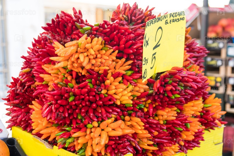 Абстрактный вид чили в продаже на рынке Риальто в Венеции, Италия