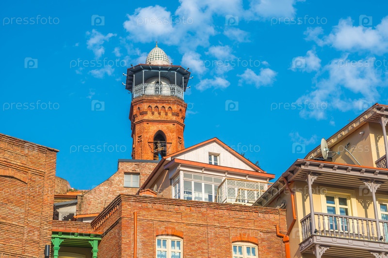 Красочные традиционные дома с деревянными резными балконами в районе Абанотубани старого города Тбилиси, Грузия