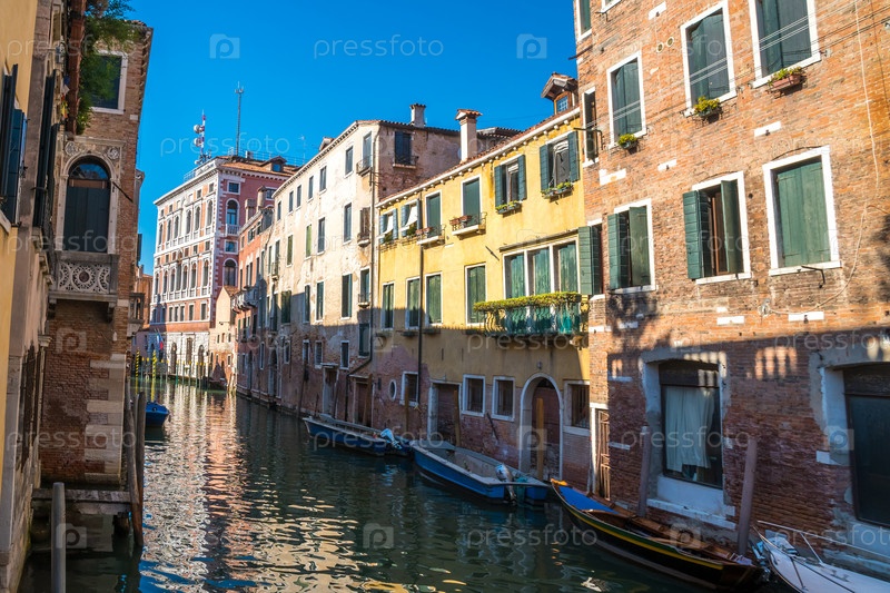 Лодки в узких каналах Венеции, Италия