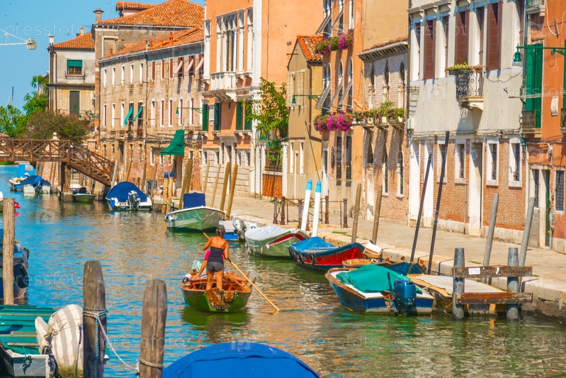Гондола по узким каналам Венеции, Италия