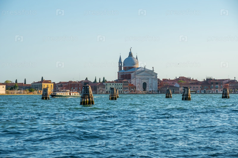 Вид на церковь Santissimo Redentore на острове Giudecca в Венеции, Италия