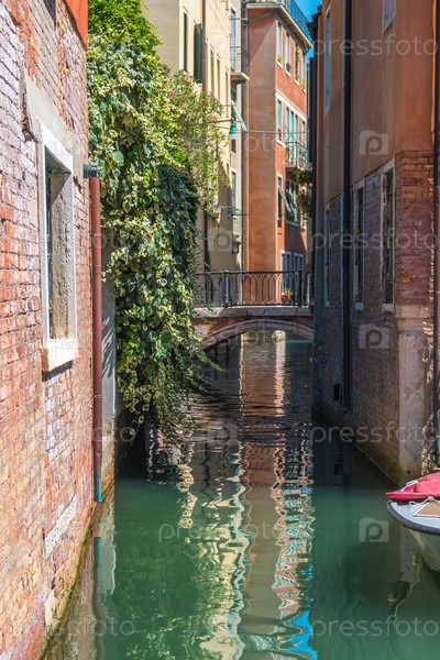 Лодки в узких каналах в Венеции, Италия