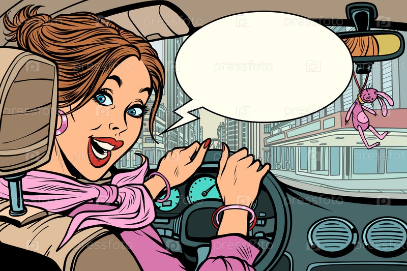 Веселая женщина за рулем машины