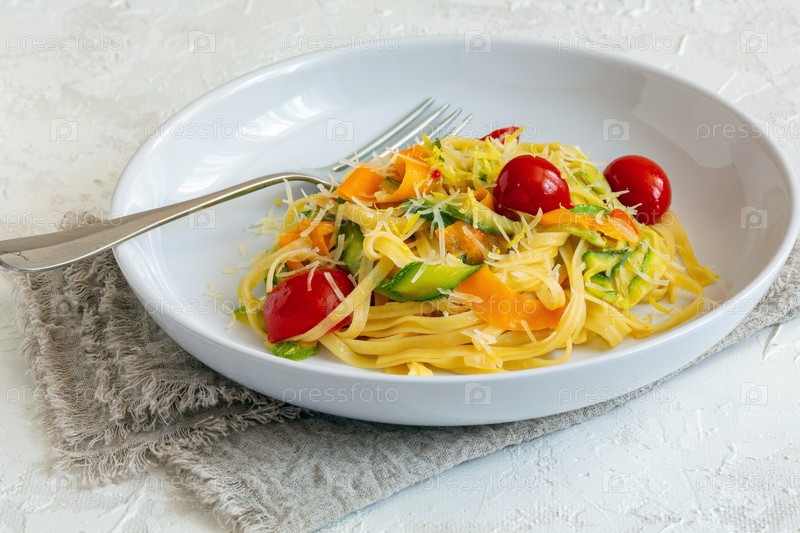 Домашняя макароны с полосками кабачка и морковь