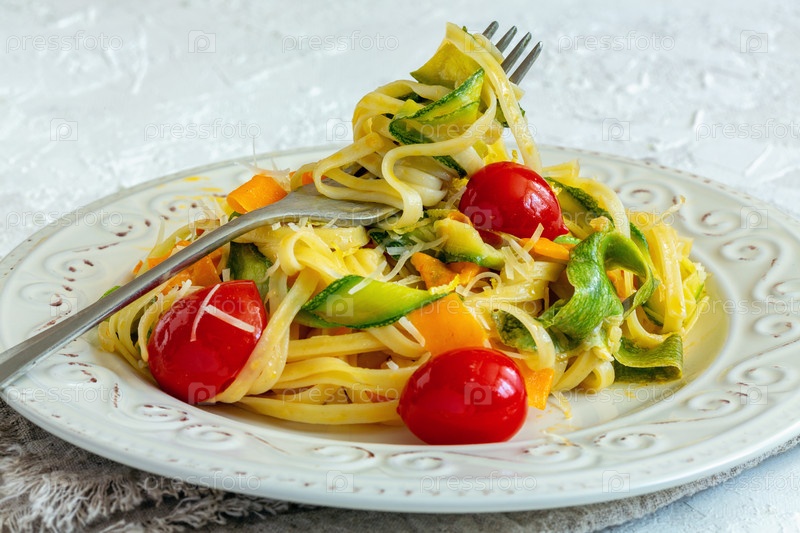 Итальянские макароны с овощами, пармезаном и лимонной кожурой