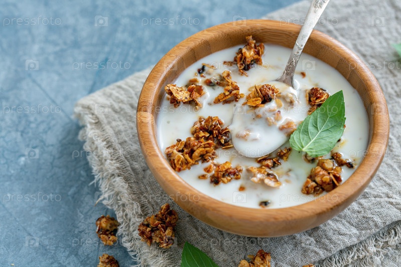 Естественный йогурт с овсяными хлопьями и орехами в меде