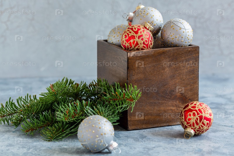 Рождественские шары в старой деревянной коробке