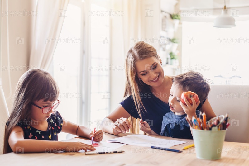 Мама рисует с детьми