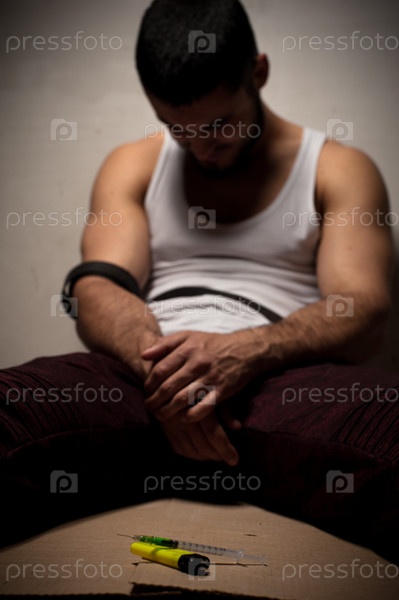 Наркозависимый мужчина сидит один