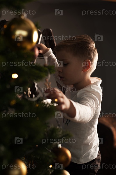 Милый ребенок украшает рождественскую елку