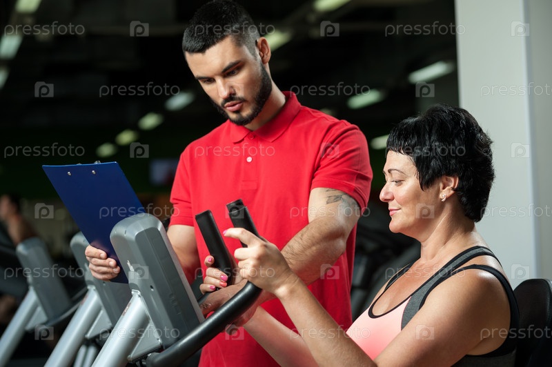 Брюнетка тренируется с личным тренером