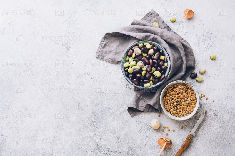 Органические чечевицы и сырые бобы.Ингредиенты для приготовления пищи