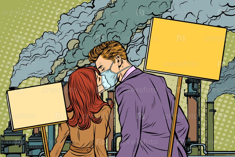 Пара мужчины и женщины, протестующие против фактического загрязнения воздуха