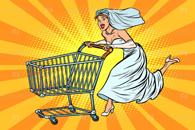 Поп-арт невеста бежит на свадебные покупки