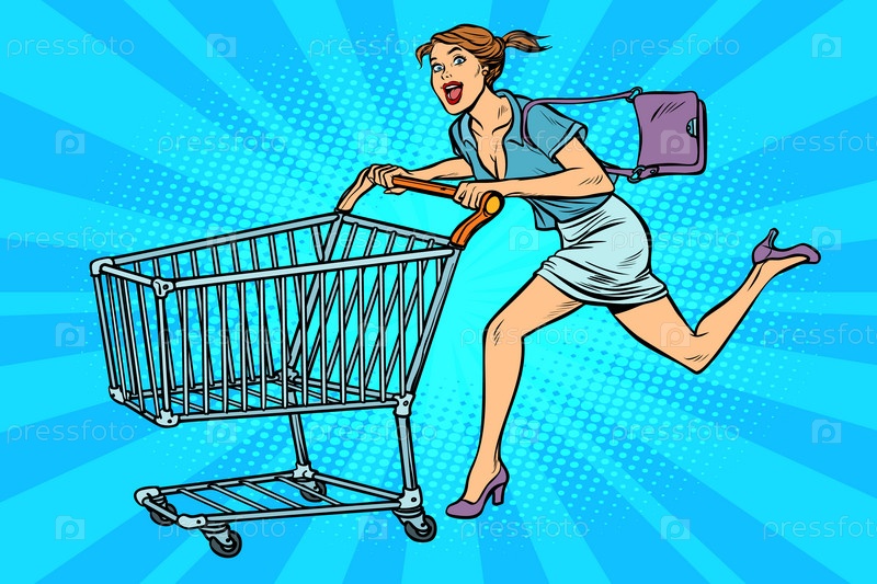 Поп-арт Женщина, бегущая с корзиной