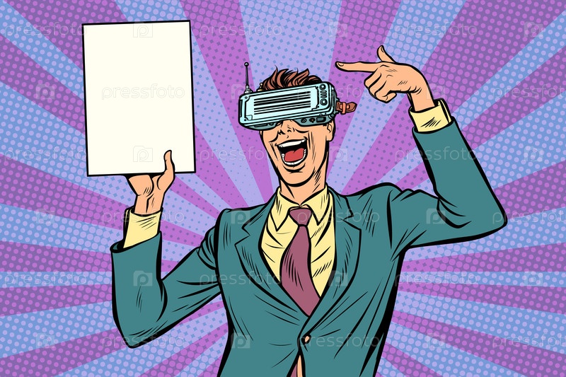Поп-арт виртуальная реальность VR очки Бизнесмены указывают на копию sp