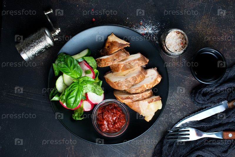 Мясо с салатами
