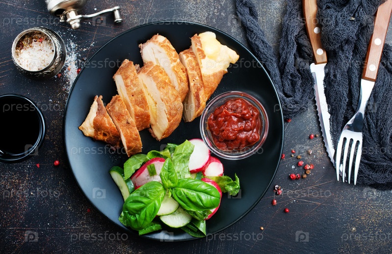 Мясо с салатами