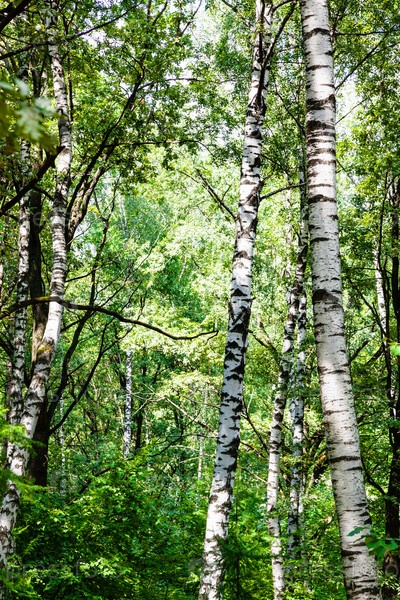 Березовые деревья в зеленом густом лесу в летний день