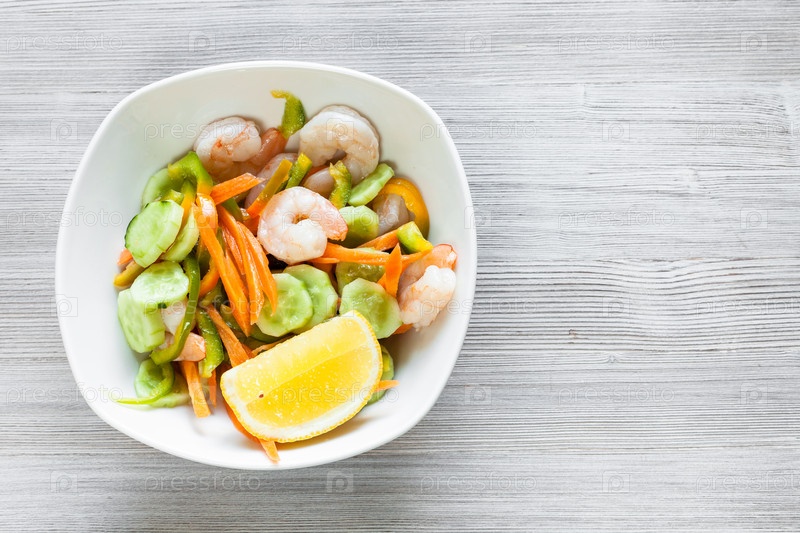 Салат с креветками из сезонных овощей и креветки
